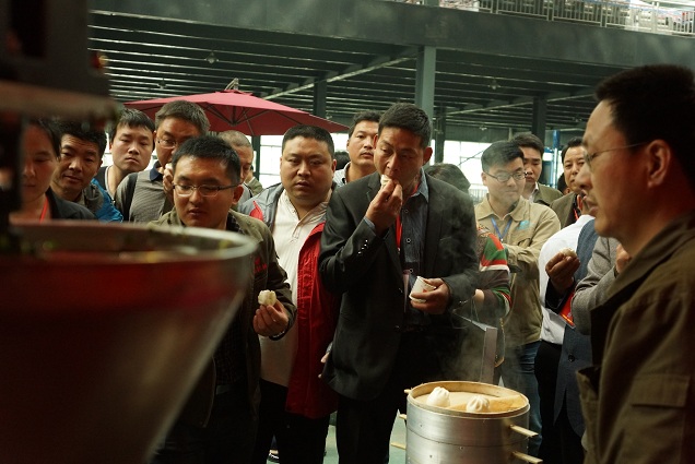 2014年4月28日,河南萬杰“科技創新、財富共享”春季新品發布會成功舉辦!全國各地新、老經銷商朋友及參會嘉賓共計200余人受邀參加了本次年度盛會,共同分享公司自主成功研發的圓饅頭擺盤機、新型包子機、自動制餅機、IV型制面機、HWH-100V型自動和面機等多款新品帶來的無限商機。
