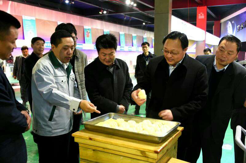 許昌市統(tǒng)戰(zhàn)部部長劉保新與襄城縣縣長李成一行在董事長王曉杰陪同下參觀公司展廳,詳細了解了公司的產(chǎn)品機構(gòu)和企業(yè)文化,特別是在公司展廳了解到高端制面機項目的總體規(guī)劃和發(fā)展成績后對萬杰智能的發(fā)展表示高度贊揚